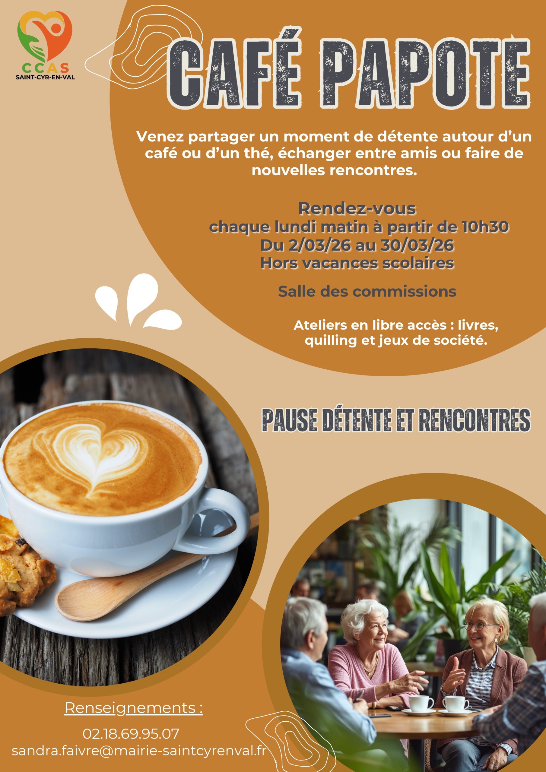 Venez partager un moment de détente autour d’un café ou d’un thé, échanger entra amis ou faire de nouvelles rencontres.