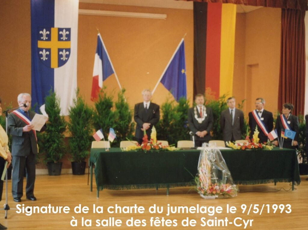 La charte de jumelage a été signée à Saint-Cyr-en-Val en 1993 et à Bliesen en 1994 lors du millénaire de Bliesen.