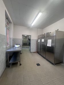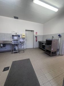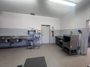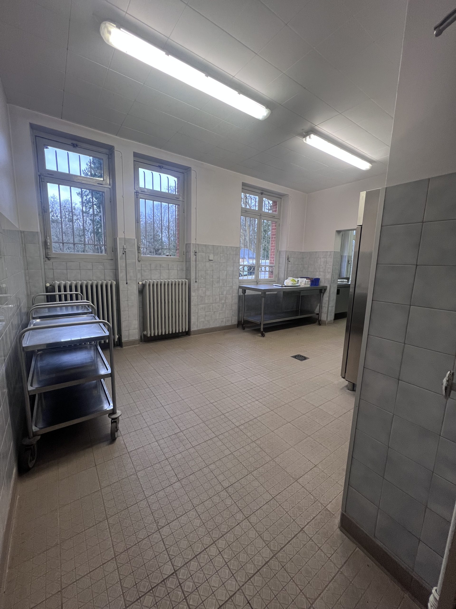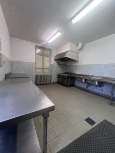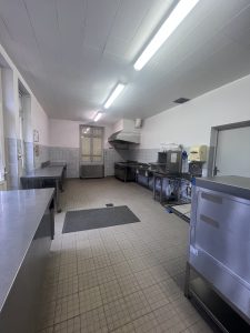 Elle dispose d’une cuisine équipée (réfrigérateur, four, lave-vaisselle) et de vestiaires.